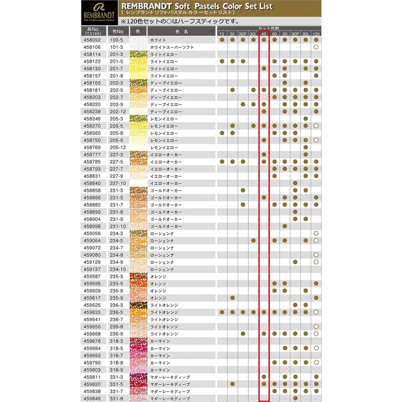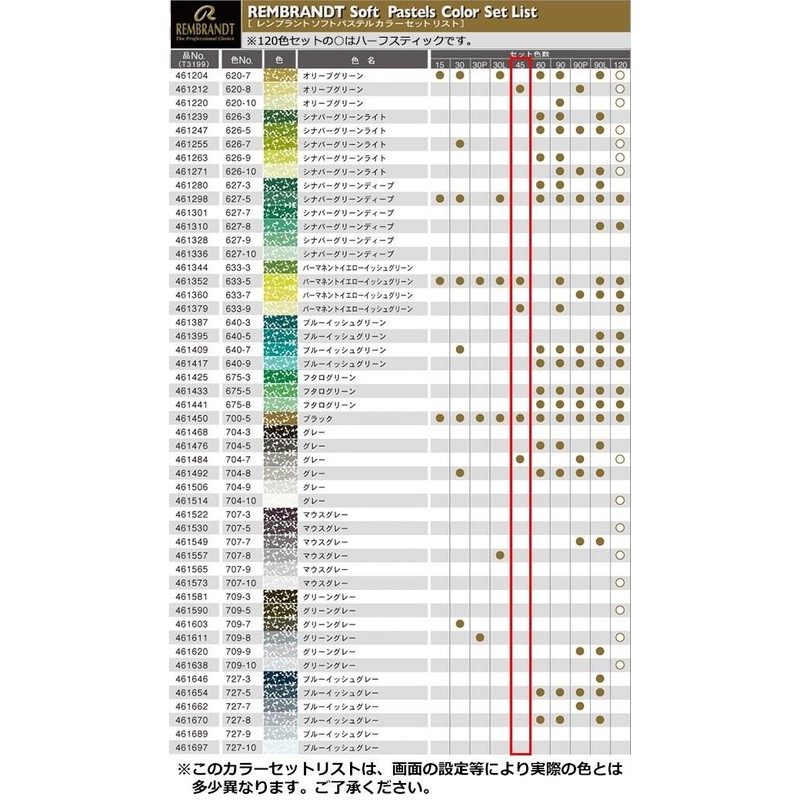 Rembrandt Soft Pastel Traditional Box Set, 45-Piece Full Sticks, General Selection