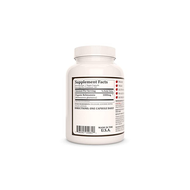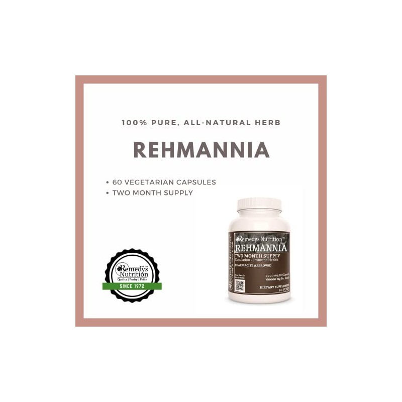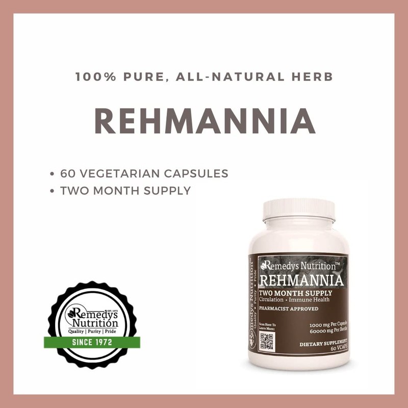 Remedy's nutrition Rehmannia Root | 1,000 mg, 60 Vegan Capsules Herbal Dietary Supplement | Two Month Supply Non-GMO, Gluten-Free, Dairy Free, No Fillers or Additives, No Preservatives
