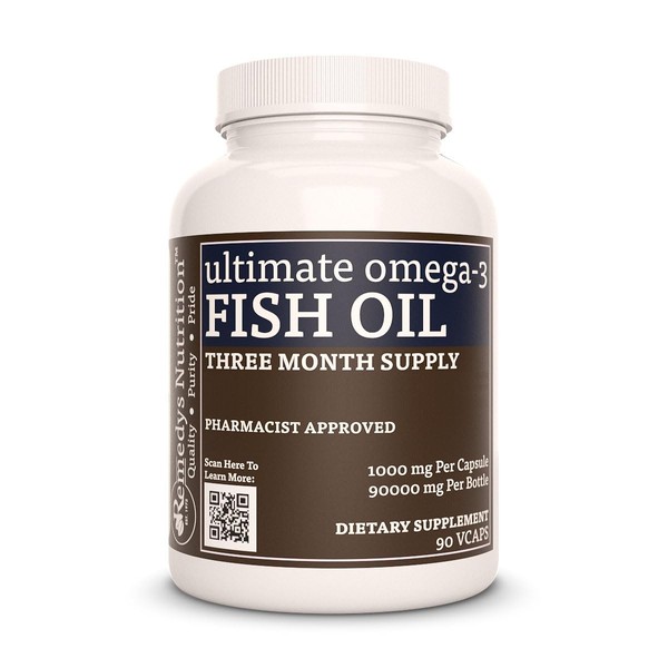 Remedy's nutrition Ultimate Omega-3 Fish Oil 1,000mg per Capsule/90,000mg per Bottle/Vegan Caps- 3 month supply