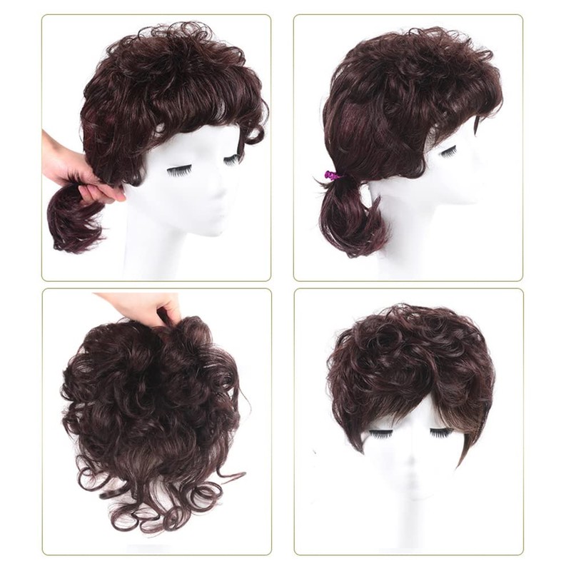 Remeehi 5.5" x 5.5" Short Curly Human Hair Extensions Crown 13cm Long Invisible Toupee