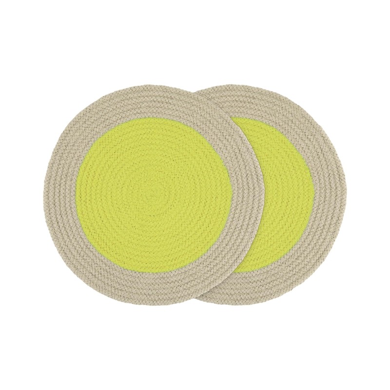 REMEMBER Cotton Place Mats "Lime", Set of 2, Height 0.5 cm, Diameter 38 cm, Colourful Cotton Placemats
