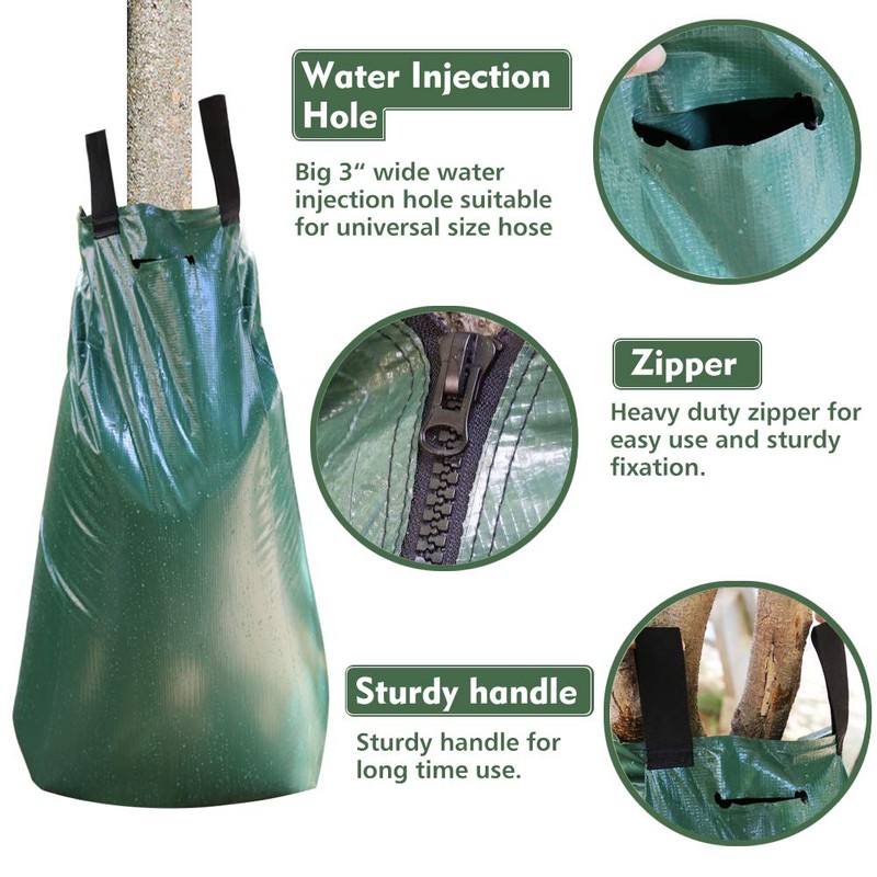 - {Extremely Easy to Use & Set Up} Remiawy tree watering bags are easy to install with great zipper. All you need to do is to wrap them around the tree, pull the zipper up and pour in water. For large trees you can zip two bags together. Installing them is a breeze and filling them with hose is even more simpler.