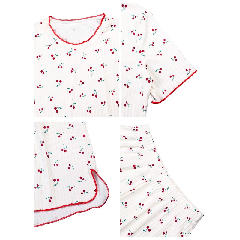 • Material: Cherry print pajamas for women is made of Polyester. The fabric is soft and lightweight, breathable, smooth against the skin so you can enjoy comfort