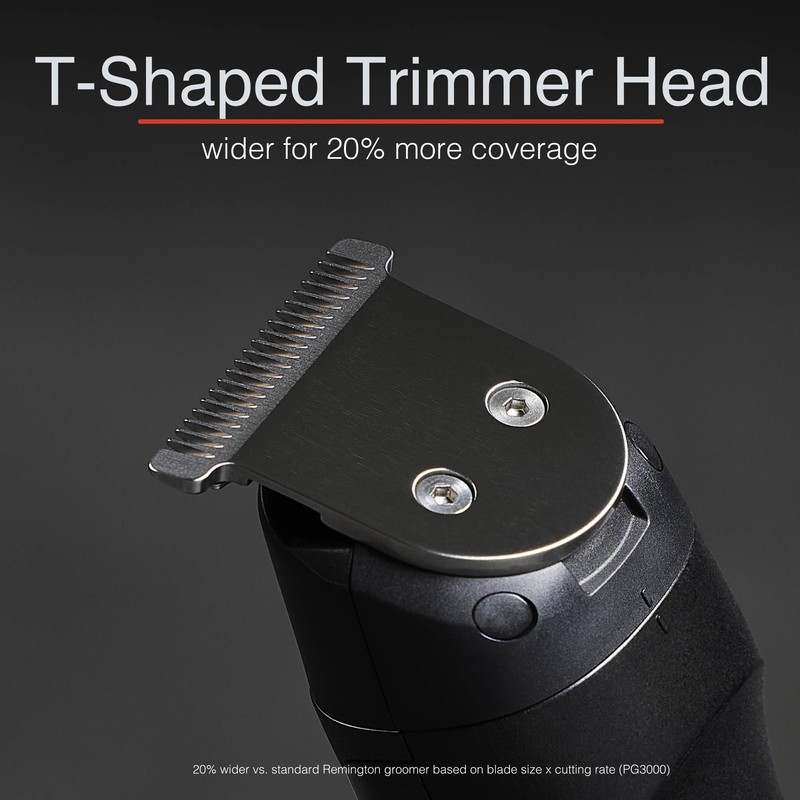 - WIDE T-BLADE + ADJUSTABLE COMB: The 38mm Premium T-Blade is 20% wider than standard Remington groomers, providing more coverage for a stubbled look. Cut hair and shape your beard with confidence.