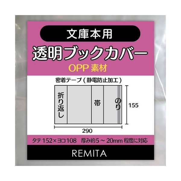 remita Transparent Book Cover 文庫本 100 Count OPP Material bc100buop