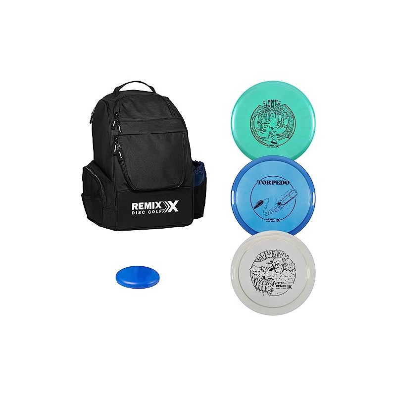 - REMIX DELUXE BACKPACK PACK- Featuring the Remix Starter Backpack, which has space for up to 20 Disc Golf Discs, a Water Bottle, and many accessories. The 3-Count Disc Pack contains 3 randomly selected Sport, Glow, and Base plastic discs - Putters, Midranges, and Drivers - a perfect introduction to the fun that Remix and disc golf has to offer!