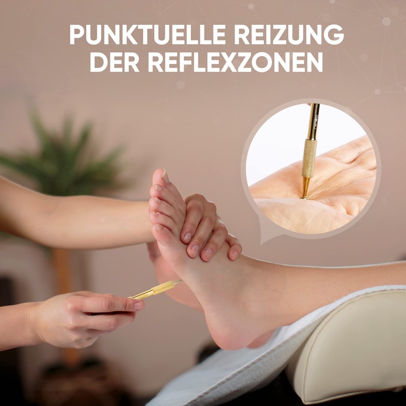 - Gold-plated surface: the acupressure or acupuncture pen is made of austentic, rust-proof and acid-resistant stainless steel. In addition, the surface is finished with 18 carat gold layer.