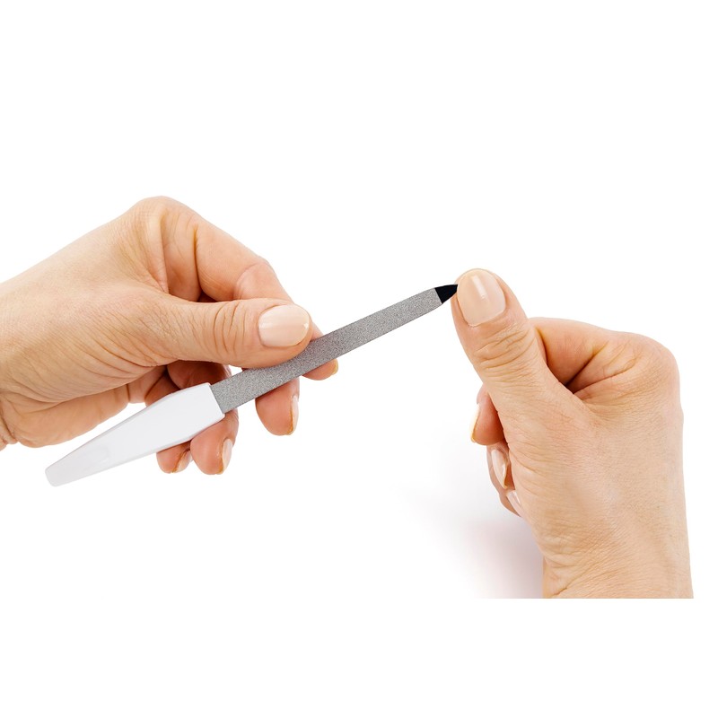 - Handy and practical: thanks to the clever handle, the file not only fits perfectly in the hand, but allows precise work - the white handle is also suitable for pushing back the cuticles.