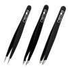 REMOS Tweezer Set 3 Pieces with Eyebrow, Splinter & Combination Tweezers in Black