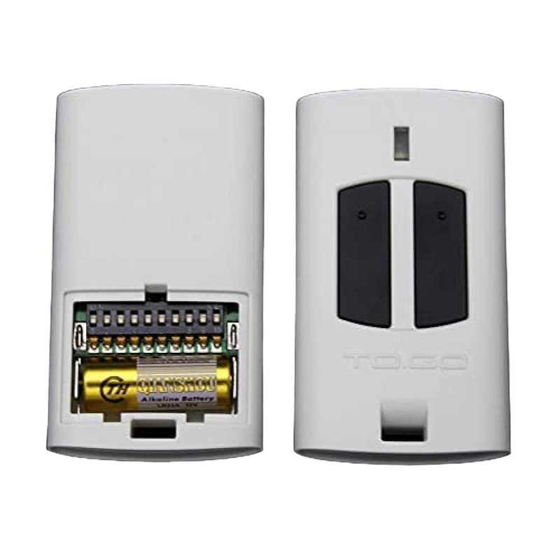 This remote control of the gate BENINCA TO GO 2WP as a frequency of 433.92 MHz and have 2 button(s). It comes with an instruction and batteries. The Programmation of the remote is easy and requires no special equipment. This remote is compatible with the gate remote : BENINCA LOT1W, BENINCA LOT2W, BENINCA LOT2WMS