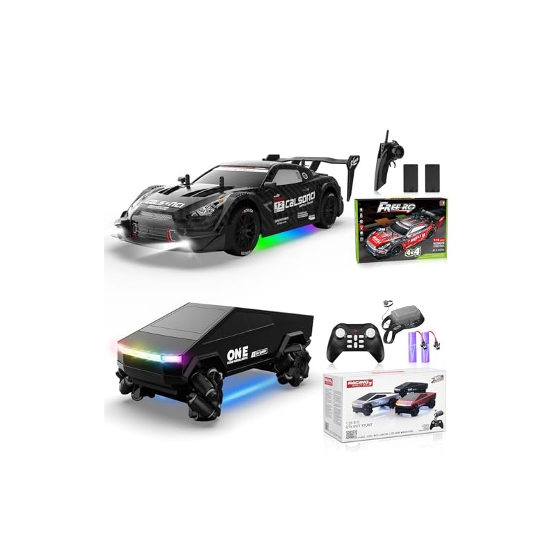 Remote Control Car 1:16 Scale RC Drift Cars 2.4Ghz 4WD 30KM/H High Speed Race with LED Lights+Remote Control Car, RC Stunt Cars 2.4Ghz 4WD 360°Rotating All Terrain High Speed Monster Truck