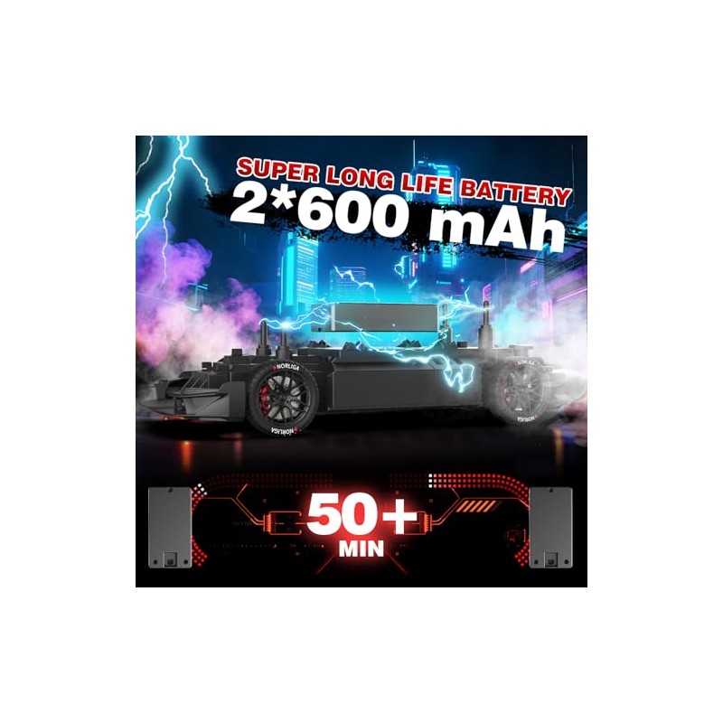 Stunning Cool Design: Remote control drift car LED lights on front, rear. Underbody can colorful glow during operation for ultra-cool night drifting. RC drift car glowing chassis and sleek body makes this both a dynamic racer and display-worthy collectible