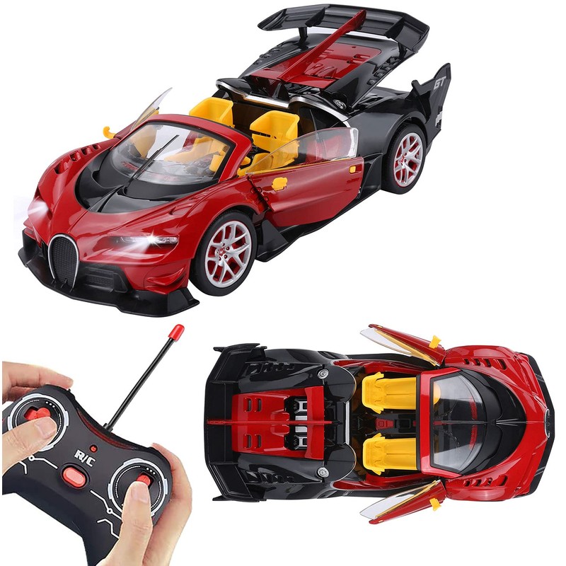 - CONVERTIBLE SPORTS CAR, MORE FUN - Convertible sports racing car, just like the real thing, adding much more fun than other RC cars. Doors and engine cover open and close with push of a button on controller. Kids can invite their little toy figures to play together, pretending drivers or passengers. Working headlights and taillights.