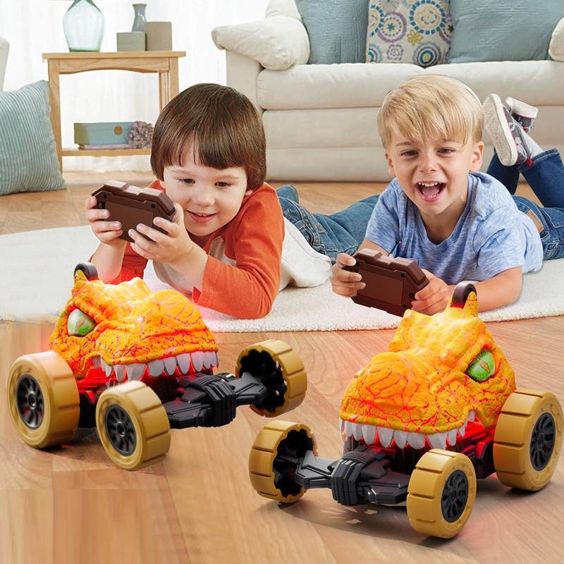 - The RC car is stunting around:The remote control car can drive 360 degree spins,race, double-side running and having LED dazzling headlights.Your little kids boys and girls are enjoying a marvelous fun.