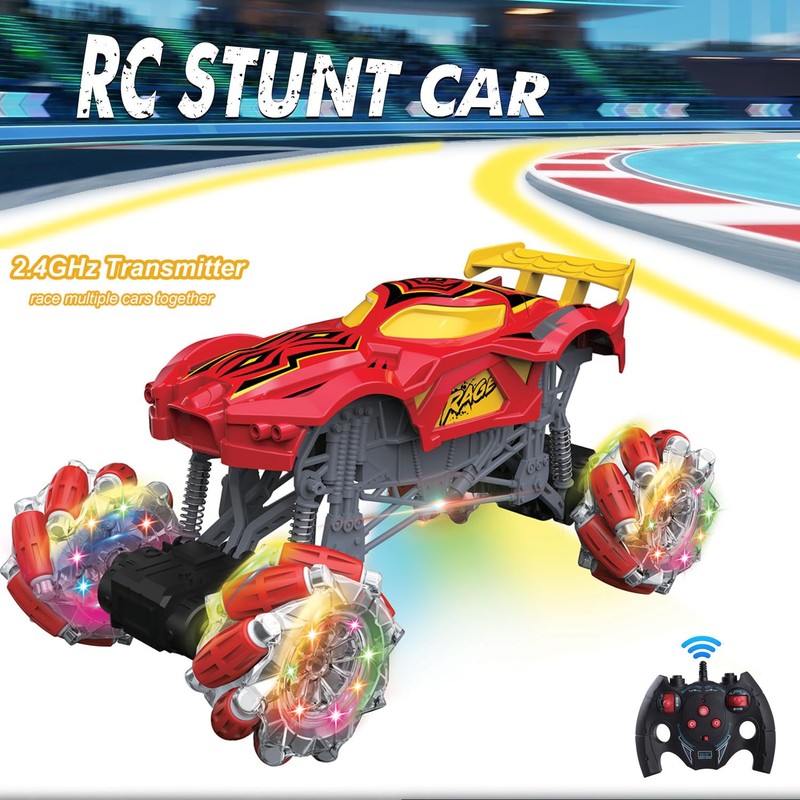 - 【RC Stunt Car with Lights and Music】Our RC gesture stunt cars have colorful lights around the four wheels, which move with popular music. Short press the switch on your remote controller to turn on or off the music and lights. The remote control car has a working spring suspension system, 4 wheel drive, can easily adapt to a variety of terrain: such as grassland, muddy roads, beaches, and other complex terrains, indoor and outdoor.