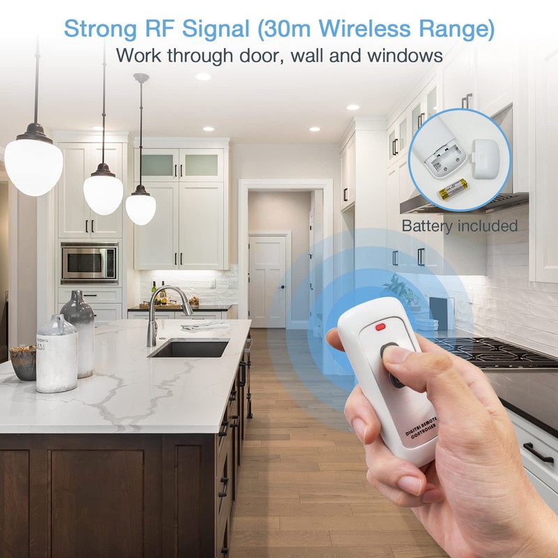- Suitable for various indoor occasions: remote control socket can remotely turn on or off some hard to reach appliances such as home light and decorations, adding convenience to living room, bedroom, kitchen, office, etc.