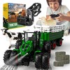- 🌾【DIY Your Own Farm】This remote control tractor is a set of toys with detachable parts, including a front loader and a trailer. Little farmers can freely connect the trailer to the back of the tractor and load hay bales or various animals (cows, sheep) onto the trailer for transportation on the farm. This RC tractor toy not only meets the play needs of children, but also helps them develop their hands-on abilities and imagination.