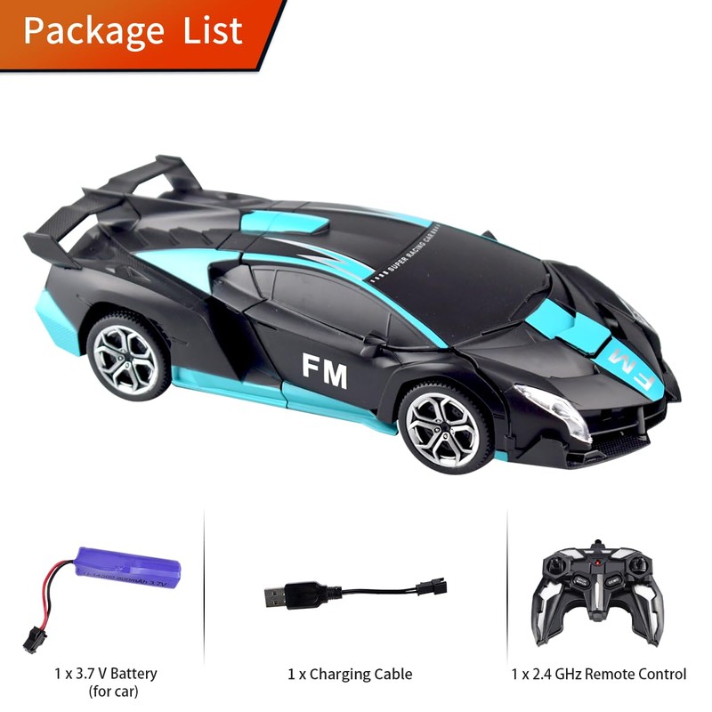 - 🚗🚙【Realistic Sports Cars】Professional appearance design. Dynamic and stylish shape.Cool lights design, can emit bright light in darkness.It has 5 smooth wheels and could Super Fast Drifting 360° turn in both robot and car.Many kids love it very much!