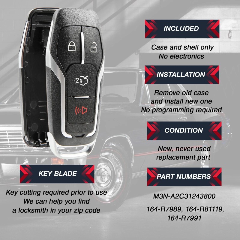 RemoteStop 2 Key Fob Remote Shell Case Replacement for Ford Lincoln 4b M3N-A2C3124380