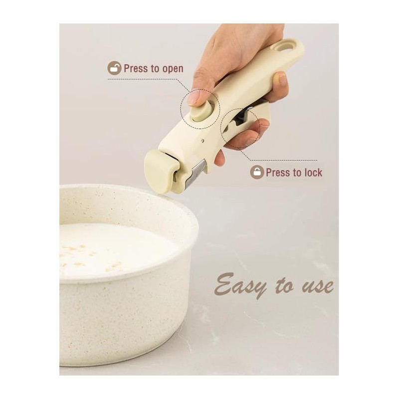 - 【Easy and convenient to use】Press the button to clamp or release it, and the entire pot handle can be washed with water