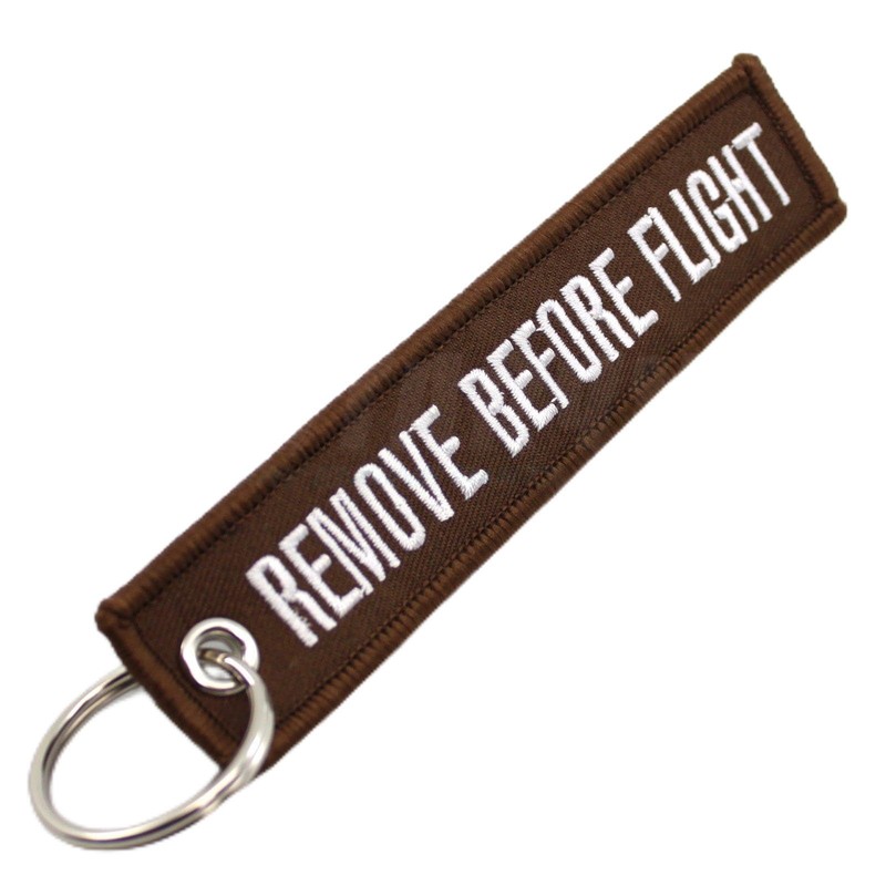 Remove Before Flight Keychain - Brown/White by Rotary13B1