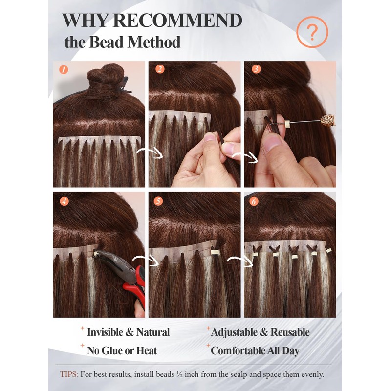 - Painless & Damage-Free Installation – Eco-friendly micro beads ensure a glue-free, tape-free, and no-sew application, protecting your scalp and natural hair while allowing easy removal.