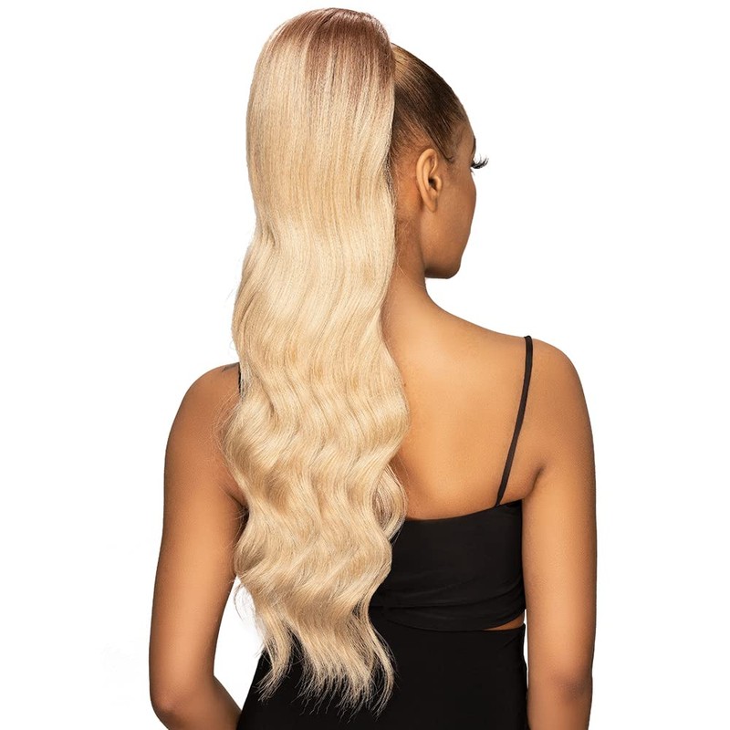 The Remy Illusion Pony Topaz body wave ponytail is made with virgin synthetic hair, producing a gorgeous, healthy looking and silky texture that you will simply love! With a user-friendly clip-on attaching system, non-tangle non-irritating design, incredibly versatile in its styling options, this fake ponytail will certainly become an essential tool in your bag of beauty tricks, turning all heads no matter the occasion.