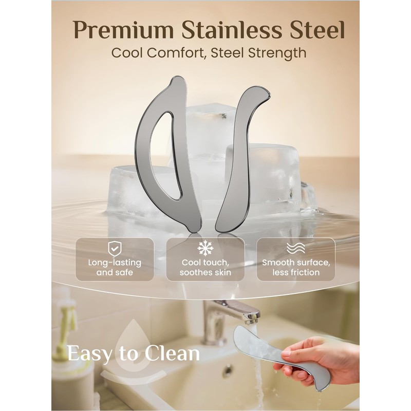 • Premium Stainless Steel: Safe, smooth & long-lasting 304 steel, gentle on skin. The polished surface glides effortlessly and cleans with just water, freezer-safe for cool relief