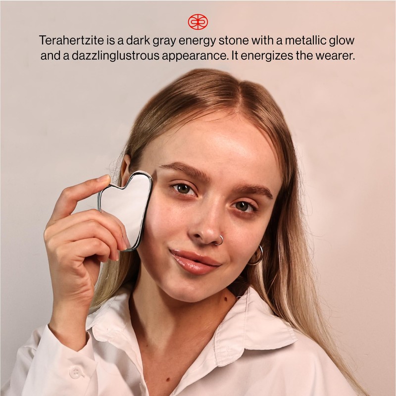 - EXCELLENT MATERIALS: Rena Chris gua sha facial tool is handcrafted from 100% Terahertz from East Asia; Terahertz is a silver-grey energy stone with dazzling, lustrous appearance