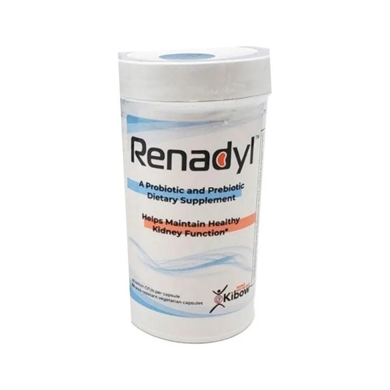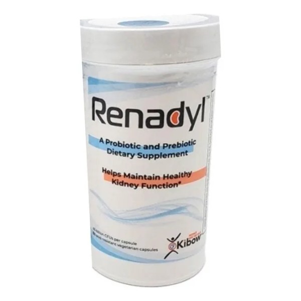 Descripción Corta: Renadyl es un suplemento probiótico para la salud renal, con una fórmula patentada que ayuda a reducir desechos nitrogenados como la urea y la creatinina. Es un auxiliar para el apoyo de la función renal y la estabilización de la flora intestinal.
