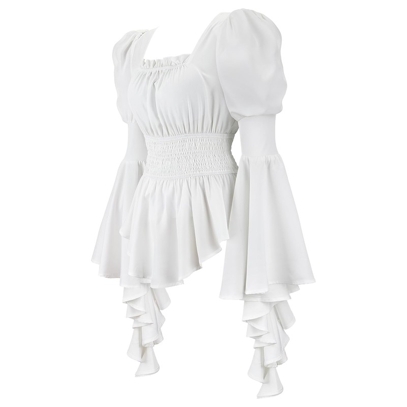 Renaissance Shirt Women Medieval Costume Women Victorian Blouse Pirate Shirt Women Renaissance Peasant Top White-L