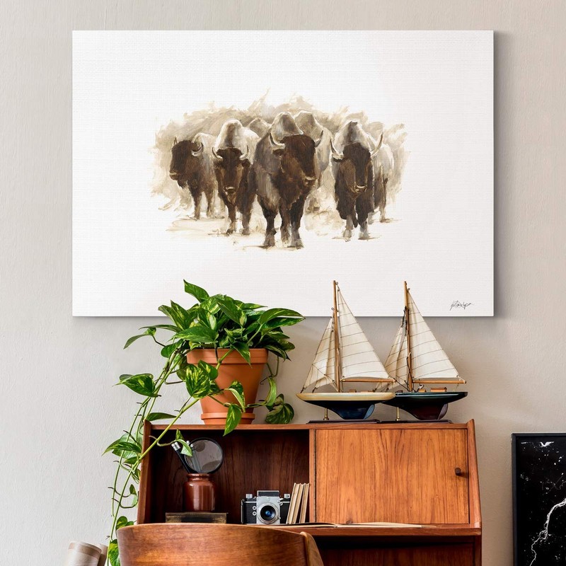 Renditions Gallery Brown Bison II Wall Art, Herd of Bisons, Shades of Brown on White, Painting Print, Premium Gallery Wrapped Canvas Decor, Ready to Hang, 12 In H x 18 In W, Made in America Print