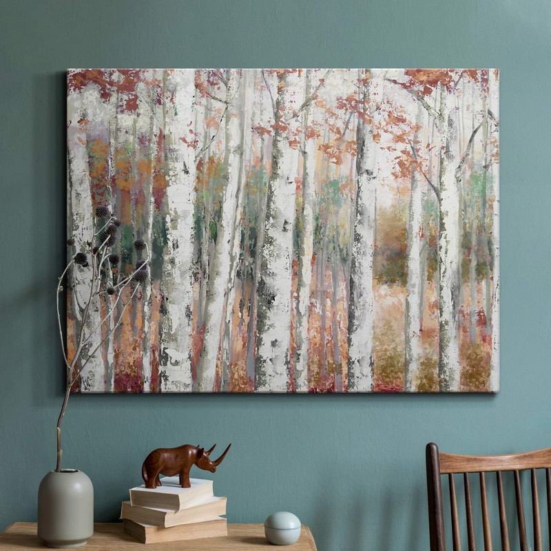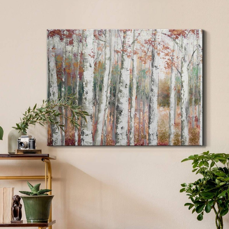 Renditions Gallery Canvas Nature Wall Art Modern Paintings Decorations Autumn Birch Forest Rustic Abstract Vibrant Foliage Wall Hanging Artwork for Bedroom Office Kitchen - 24"x36" LT33
