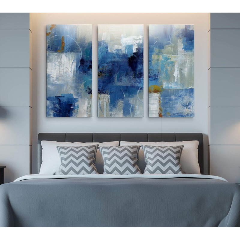 Renditions Gallery Canvas Wall Hanging Artwork Blue White Grey Rustic Brush Stroke Abstract Art Prints for Bedroom Office Home Kitchen Decorations - 20"x40"x3panels LT29