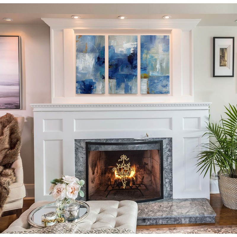Renditions Gallery Canvas Wall Hanging Artwork Blue White Grey Rustic Brush Stroke Abstract Art Prints for Bedroom Office Home Kitchen Decorations - 20"x40"x3panels LT29