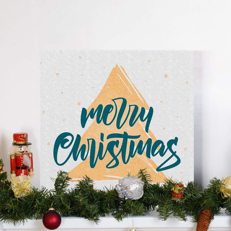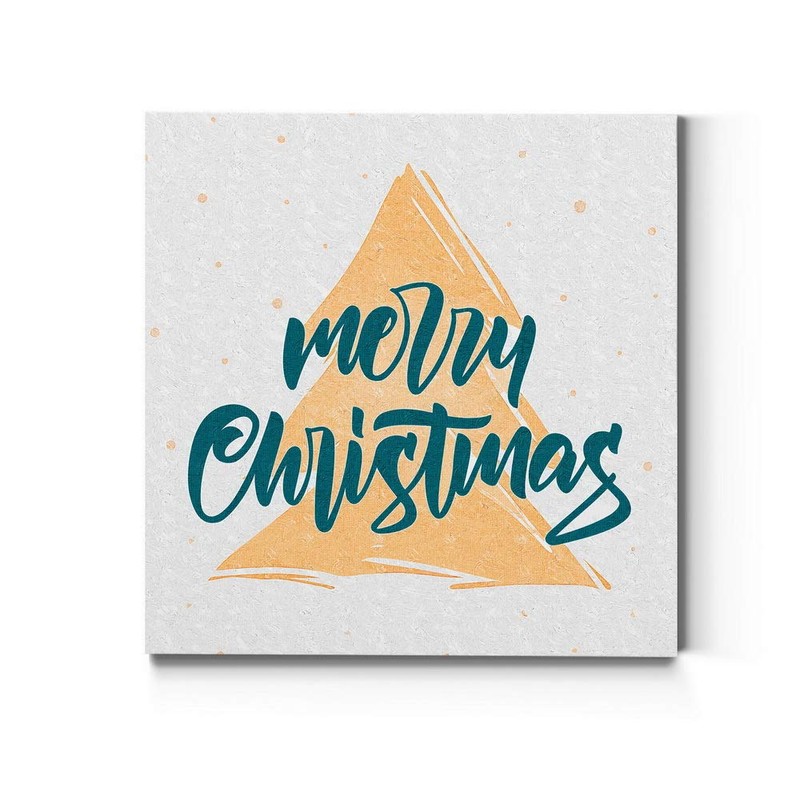 Renditions Gallery Merry Christmas Tree III Wall Art, Cute Winter Artwork, Orange & Teal, Festive Holiday Decor, Premium Gallery Wrapped Canvas, Ready to Hang, 16 in H x 16 in W, Made in America