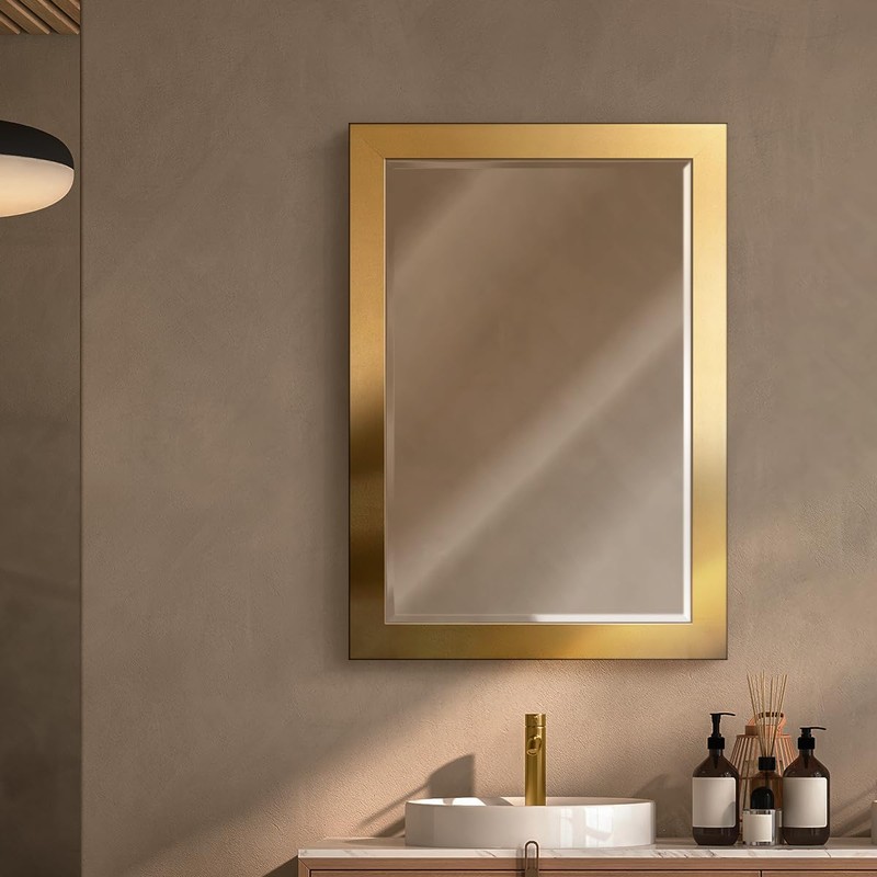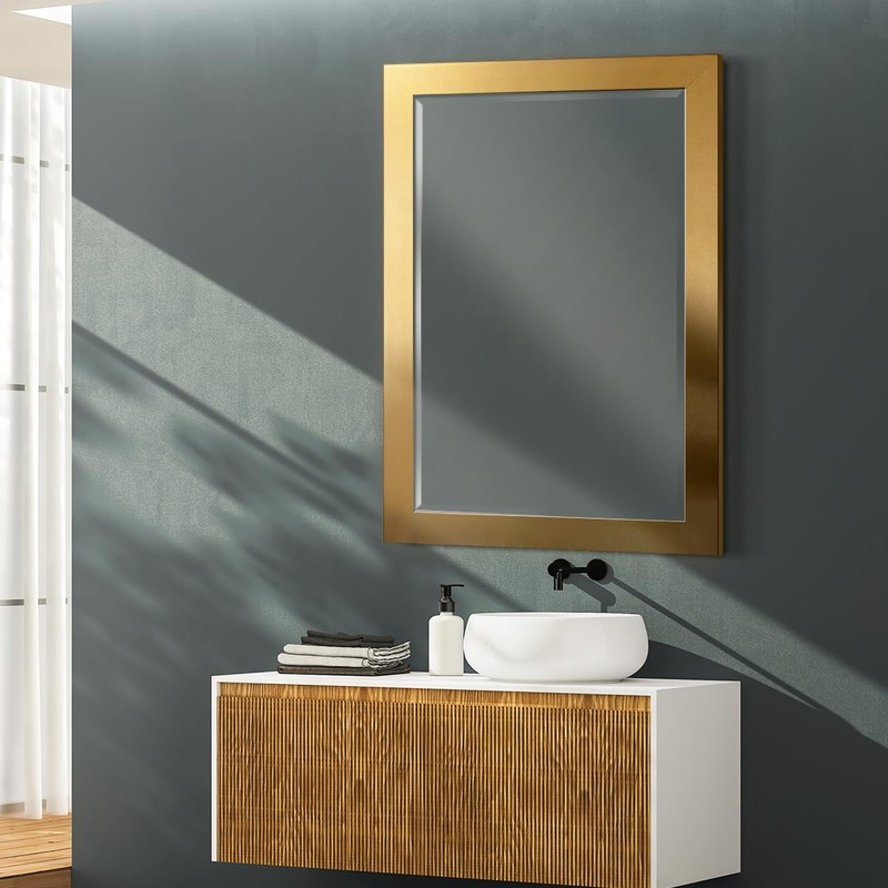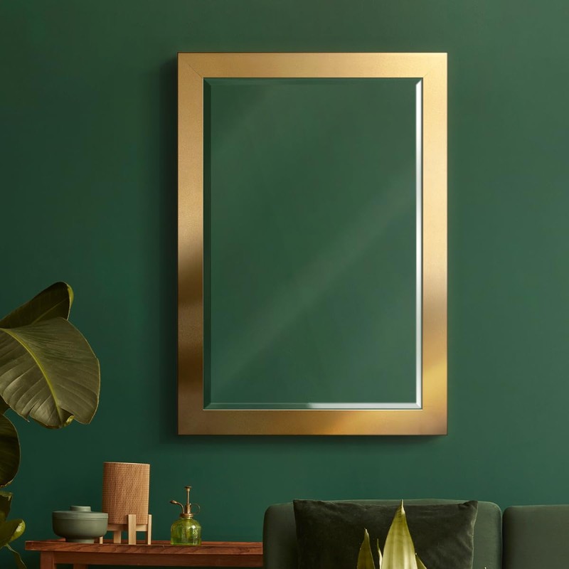 Renditions Gallery Rectangular Shiny Gold Wood Framed Body Mirror Verticle Or Horizontal Farmhouse Wall Mounted Vanity Mirror for Living Room Bedroom Home Decor - 41"x29" LT07