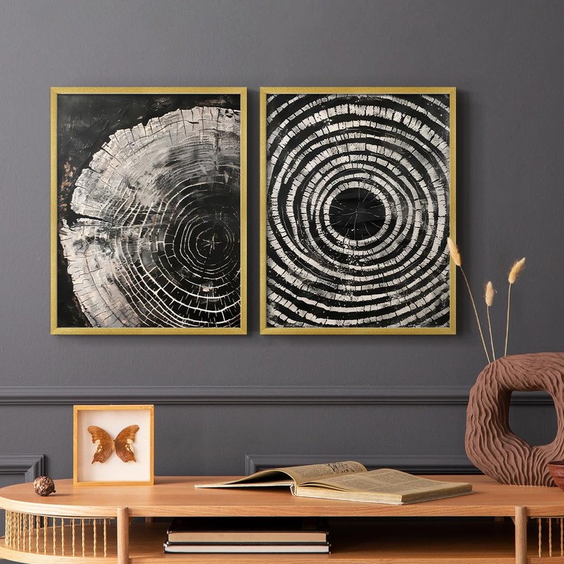 Renditions Gallery Set of 2 Peel & Stick Framed Prints, Abstract Wall Art, Magical Tree Rings Wall Decor, Re-Stickable - Ready to Hang - 16"x20" - Gold Frame LT594