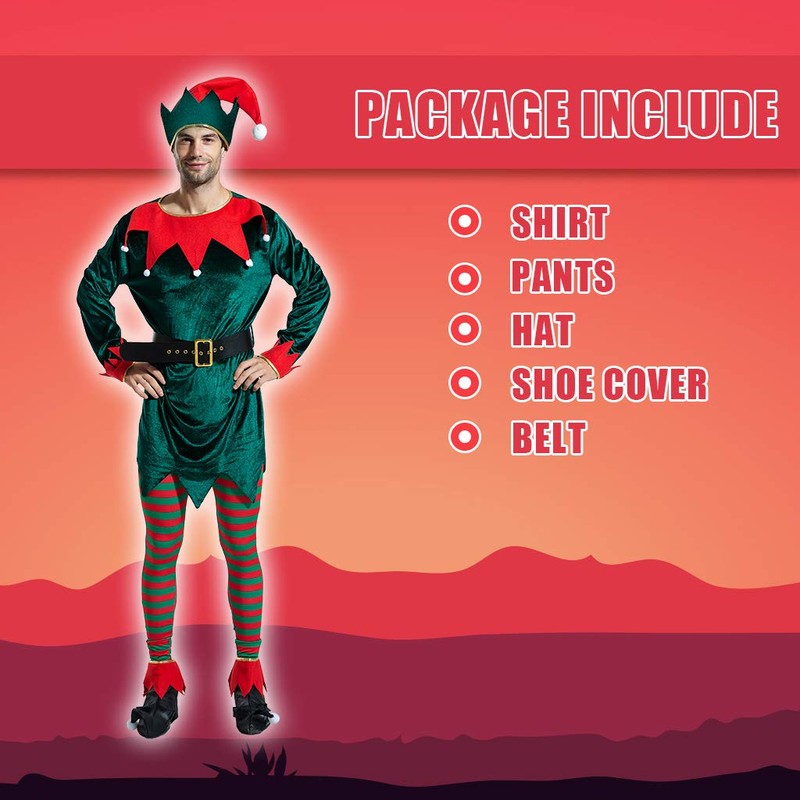 - Suitable for Men or Older Children - The green and red elf Xmas costume is typical and never be a wrong choice for your cosplay parties and festival carnival celebrations. Choose it for you and your partners!
