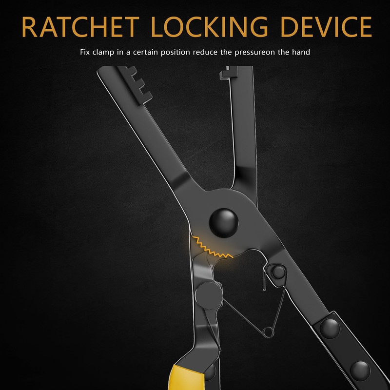 - EASY TO USE: The pliers' locking mechanism holds the clamp in the open position to remove and install metal and plastic self-tightening clips.