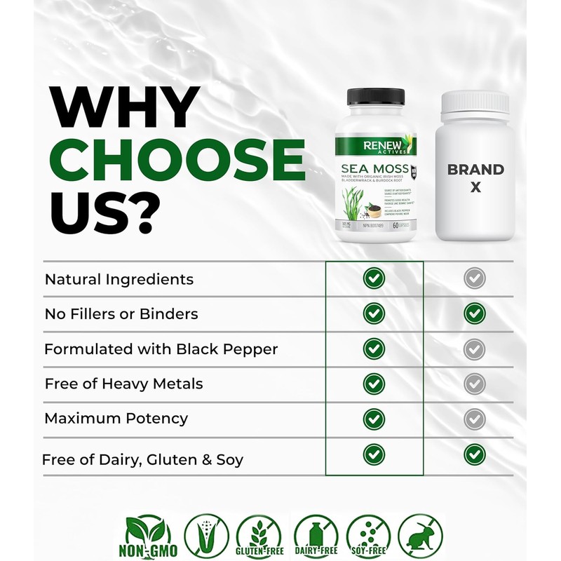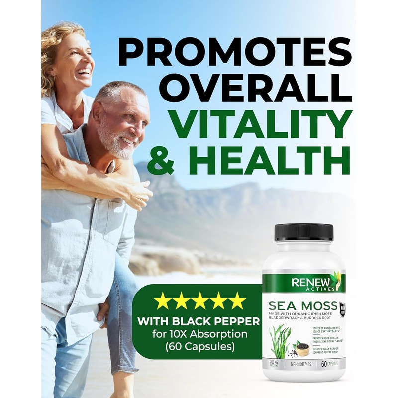 - POWERFUL ANTIOXIDANT: Renew Actives Sea Moss Capsules are packed with antioxidants from Irish moss, fortifying your cells & fighting free radicals. Enhance your body’s natural defense mechanisms & overall well-being with this potent antioxidant source