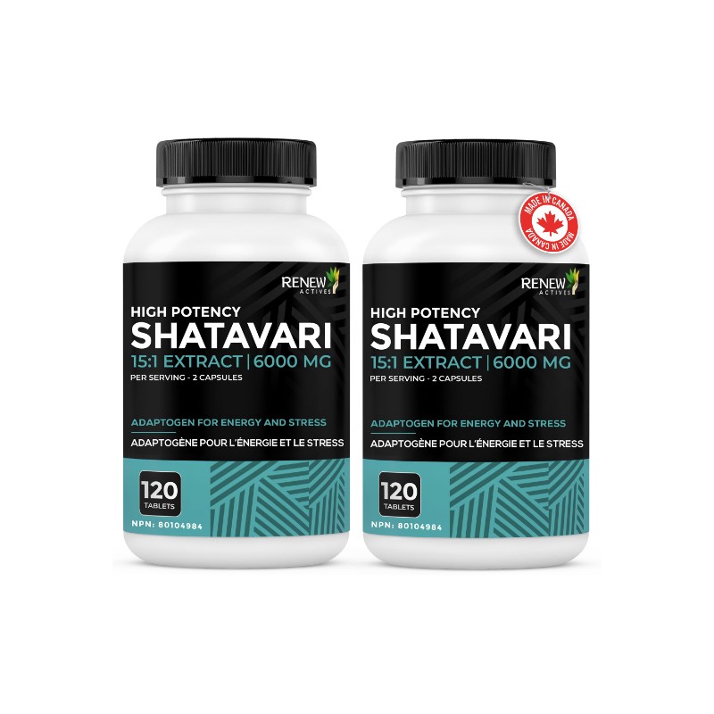 Renew Actives Shatavari – 400MG of Premium Wellness Support Experience the benefits of Shatavari, a trusted Ayurvedic herb for hormonal balance, immune health, and digestive wellness. Each serving delivers 400MG of organic Asparagus racemosus in 120 easy-to-swallow capsules. Made in Canada, this high-quality formula supports women’s health at every stage of life, promoting vitality and well-being naturally.