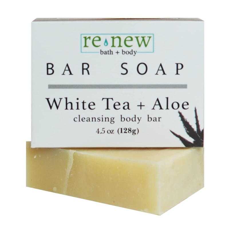 renew bath + body Natural Bar Soap, White Tea & Aloe, Handmade in the USA by Cold Process with a Moisturizing Oil Blend Infused with Shea Butter - 3 Pack, 4.5 ounce bars