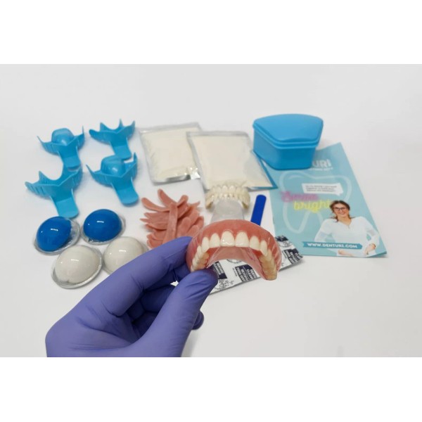 Smile confidently with a DIY Denture Kit from Denturi. This complete denture kit includes all the materials and ingredients required to craft your full or partial, upper and lower dentures from the comfort of your kitchen table. No hidden costs or "gotcha's", the kit has it all.