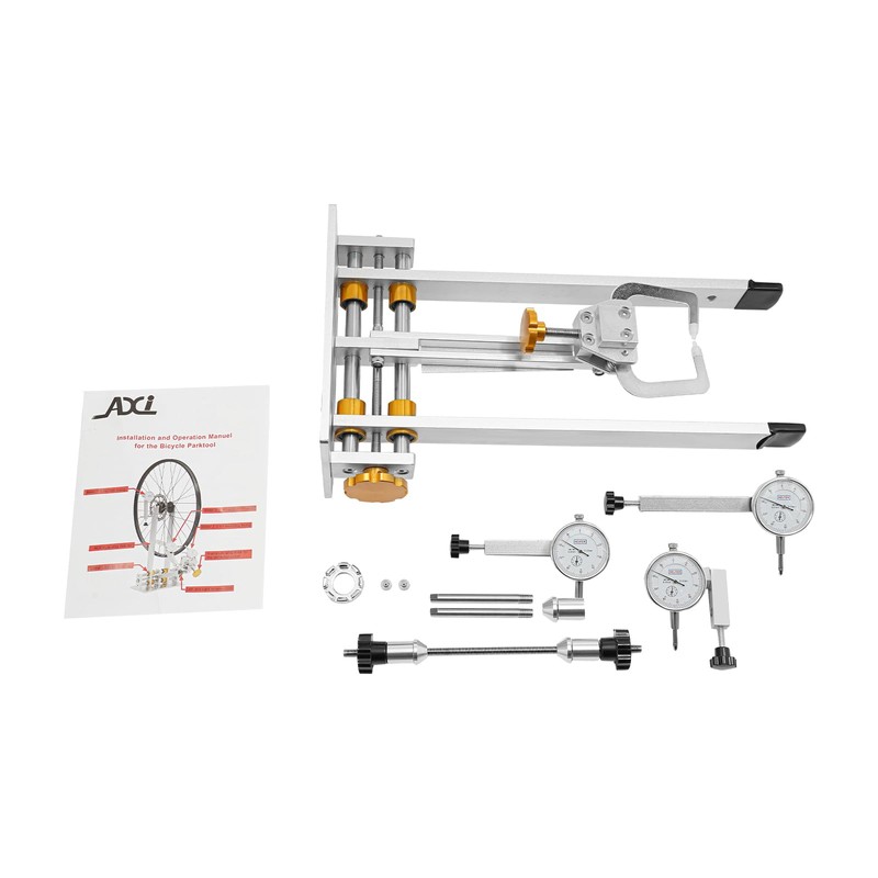 - 🔍【PRECISE MEASUREMENT】 Equipped with three high-precision gauges, this stand allows for accurate detection of rim runout, deflection, and brake disc flatness, helping you achieve precise adjustments for optimal wheel performance.
