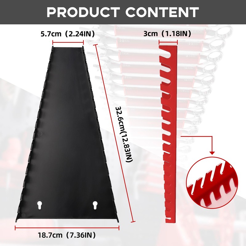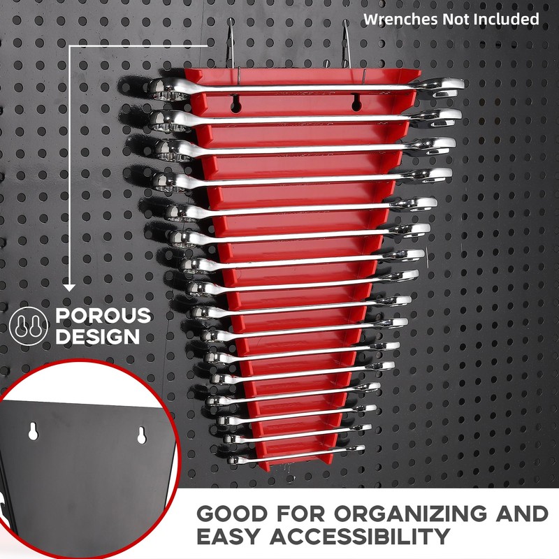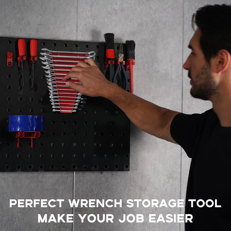 - Simple Installation:No need for complex installation process, the double hole design only requires screws or hooks to hang vertically on the wall and can also be stored in the toolbox drawer. By placing the wrench in the wrench slot, you can organize the disorderly tool room.
