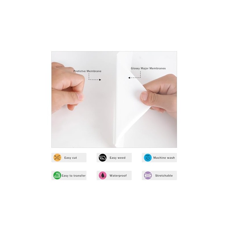 - ♻Durable & Eco-friendly♻Each HTV holds up well after repeated washes, without cracking, fading and peeling. Since it’s SGS certified, our White htv roll is safe to apply on kids clothing.