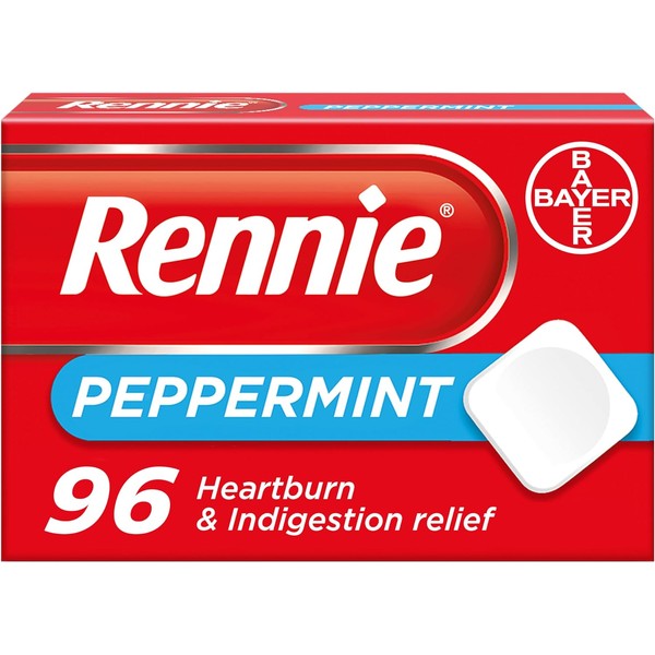 Rennie Antacids, Peppermint Flavour, 96 Count (Pack of 1)