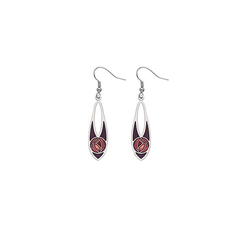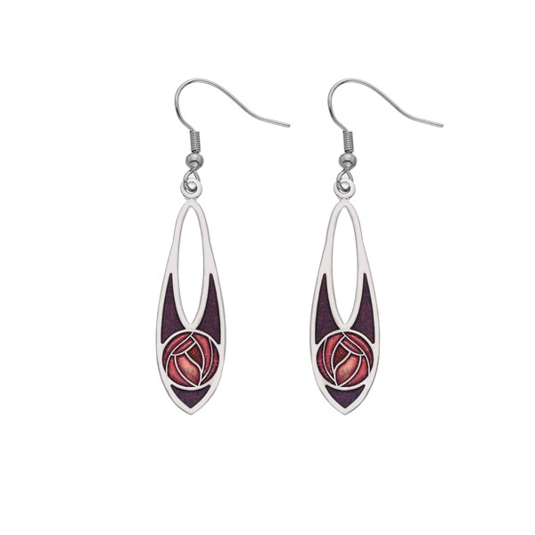 Rennie Mackintosh Inspired Rose, 36mm Teardrop Hook Earrings