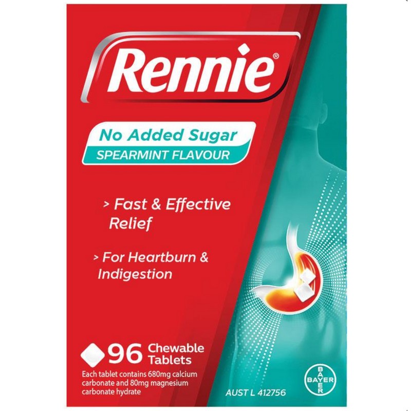 Rennie® No Added Sugar tablets contain two antacids called calcium carbonate and magnesium carbonate which neutralise excess stomach acid by turning it into water & other natural substances. Rennie is an antacid that provides fast relief from indigestion, heartburn, acidity and dyspepsia.